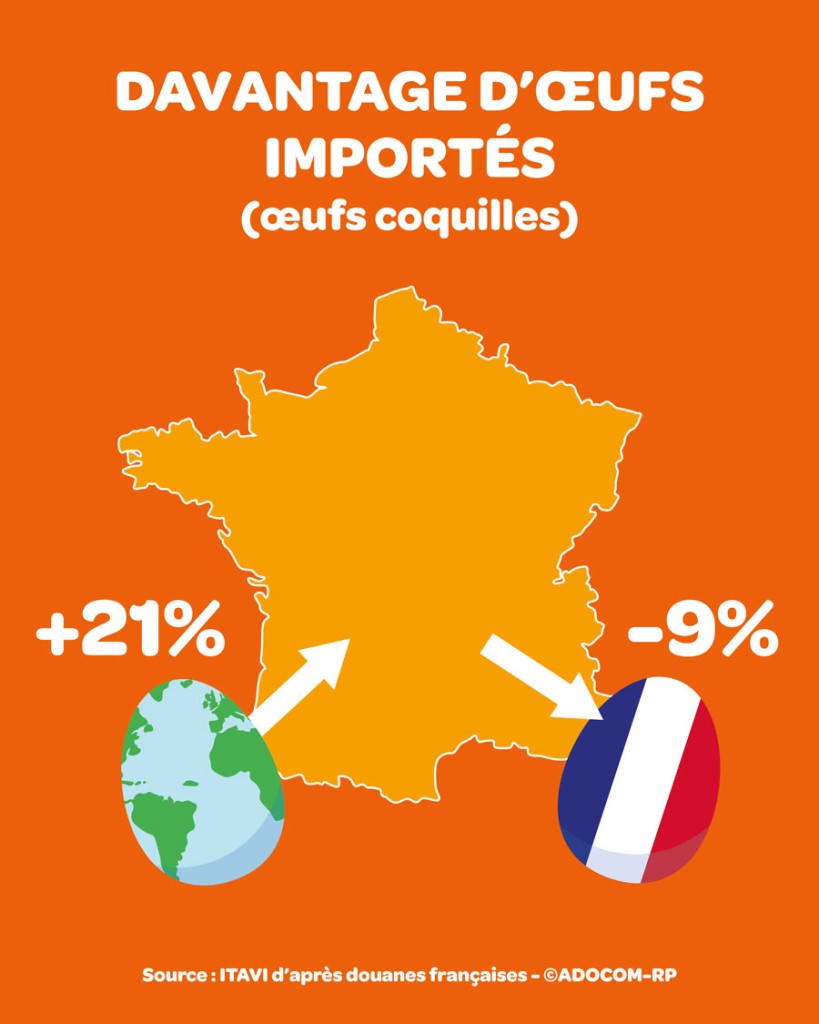 Une production française d’oeufs insuffisante constitue une porte ouverte aux importations, ne respectant ni les mêmes normes environnementales, sanitaires et sociales ni la même réglementation sur le bien-être animal appliquées sur les oeufs en France. Si les professionnels des OEufs de France sont solidaires des Ukrainiens, ils ne peuvent cependant pas accepter la concurrence d’oeufs à bas coût, très éloignés du modèle familial français et non soumis aux mêmes contraintes que leurs produits. Ils demandent donc le contrôle systématique par les autorités sanitaires françaises des oeufs importés, à l’identique des contrôles effectués sur les oeufs français.