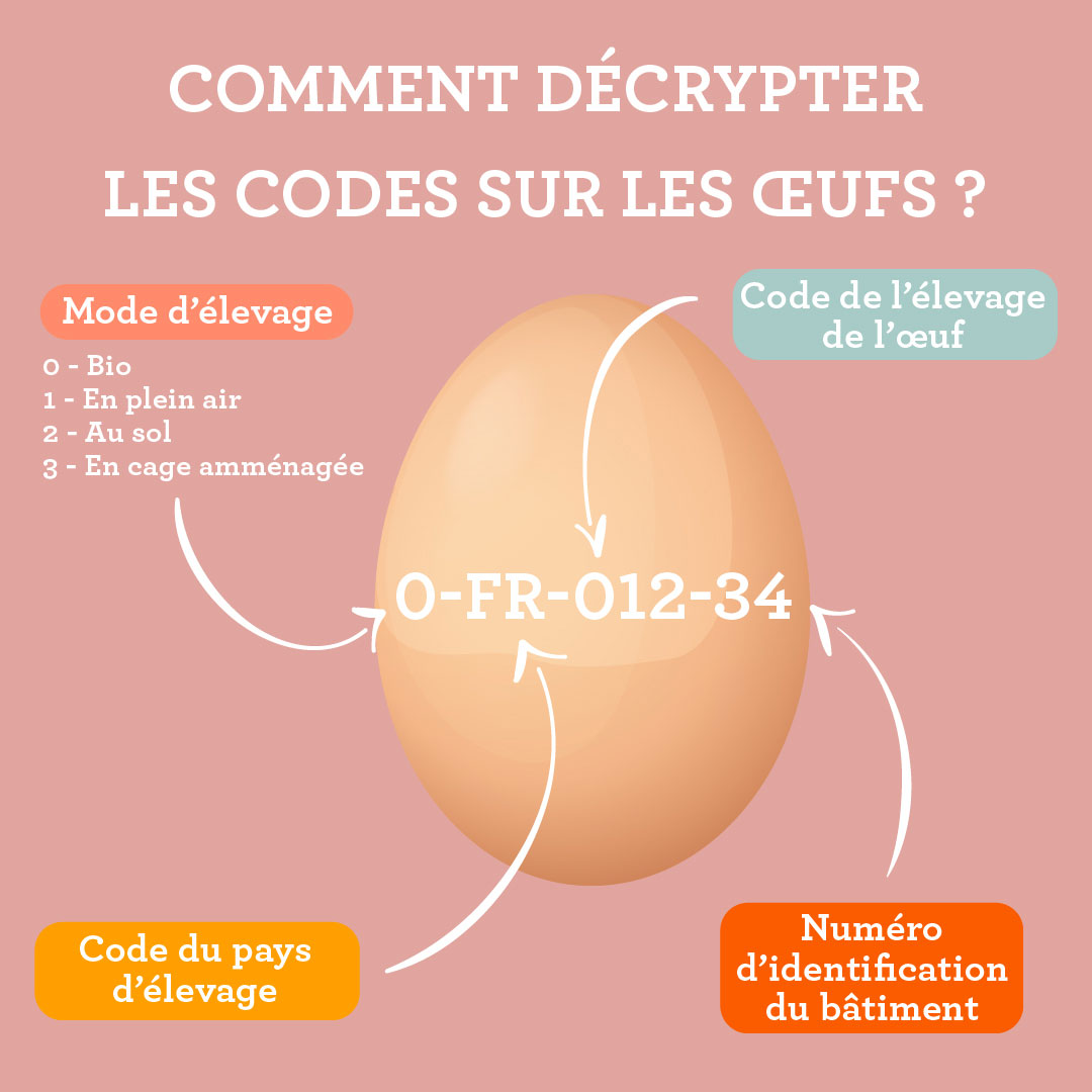 D’ailleurs, avant d’acheter une boîte d’œufs, le Comité National pour la Promotion des Œufs rappelle de vérifier le fameux « code » pour identifier le type d’élevage. Ainsi, le 0 correspond à un élevage biologique, le 1, à un élevage en plein air ; le 2 désigne un élevage au sol et enfin, le 3, un élevage en cage aménagée.