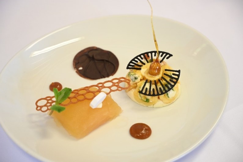 Le jury a salué son « Omelette bourbonnaise roulée à la pastille Vichy, millefeuille de pommes au Ratafia et safran », qu’elle a réalisée en forme de dôme pour faire un clin d’œil aux volcans d’Auvergne !