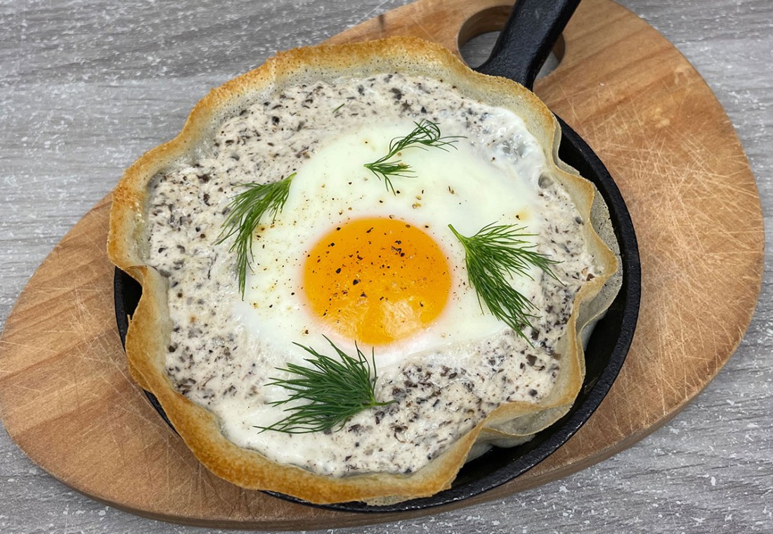 Enfourner à 180 °C pendant environ 10 minutes, jusqu’à ce que le blanc soit pris et que le jaune reste coulant.