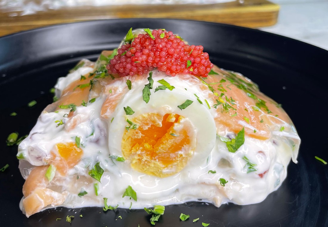 Démouler la terrine, ajouter des œufs de lump et déguster.